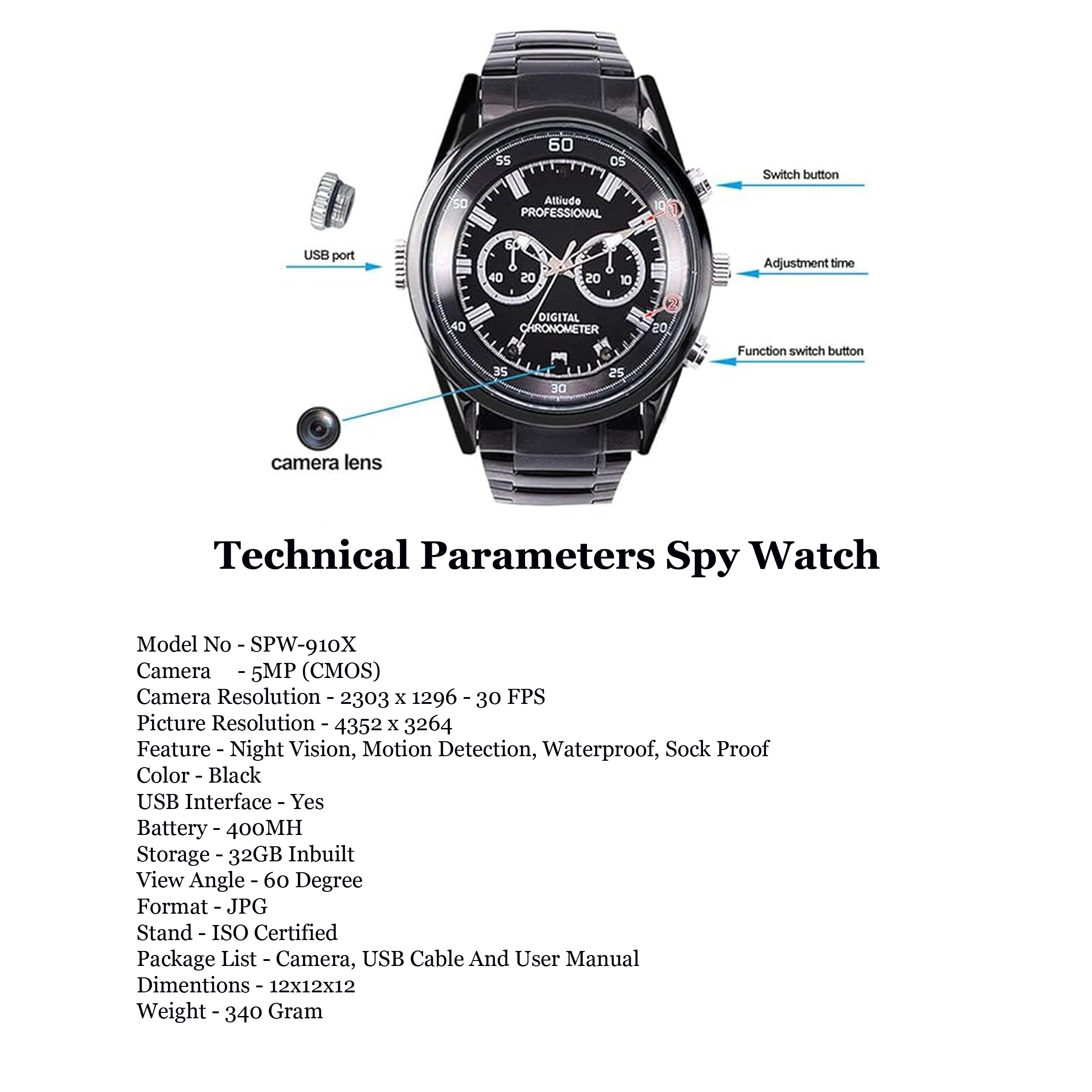 ● Inbuilt 32GB SD card (included, Inserted in Watch)