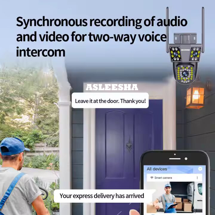 - ASLEESHA IP camera offers 6K Full HD video recording with a triple-view lens for wide coverage.